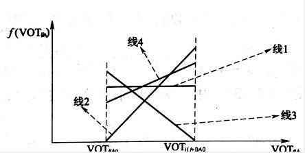 (2)討論二:假設當VOTA=VOTAo時,f(VOTA0)=0,其分布圖像如中的線2,即