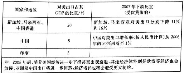 (2)危機(jī)前亞洲出口即受美次貸危機(jī)影響情況危機(jī)發(fā)生后亞洲眾多國(guó)家被 動(dòng)承受了美國(guó)匯率波動(dòng),進(jìn)出口跨境貿(mào)易電商受到直接影響。中國(guó)作為 美國(guó)最大債務(wù)國(guó),美元資產(chǎn)大幅度縮水。在美亞跨境貿(mào)易電商關(guān)系中,美國(guó)越來越傾向于作 為一個(gè)消費(fèi)國(guó),諸多領(lǐng)域與其他國(guó)家出現(xiàn)單向產(chǎn)業(yè)聯(lián)系,并且由于危機(jī)打擊其進(jìn)口 消費(fèi)能力受到巨大挫傷。 第一,發(fā)達(dá)國(guó)家美國(guó):進(jìn)口消費(fèi)跌至10年來最低點(diǎn)。美 國(guó)經(jīng)濟(jì)增長(zhǎng)的沖擊很大,最大損失估計(jì)量為美國(guó)GDP的2.2%。 第二,亞洲國(guó)家出口對(duì)美國(guó)具依賴性:美國(guó)成為亞洲主要消費(fèi)國(guó),單向產(chǎn)業(yè)聯(lián) 系明顯。亞洲有很多國(guó)家和地區(qū)的出口在較大程度上對(duì)美國(guó)具有依賴性。亞洲部 分國(guó)家和地區(qū)對(duì)美出口比重